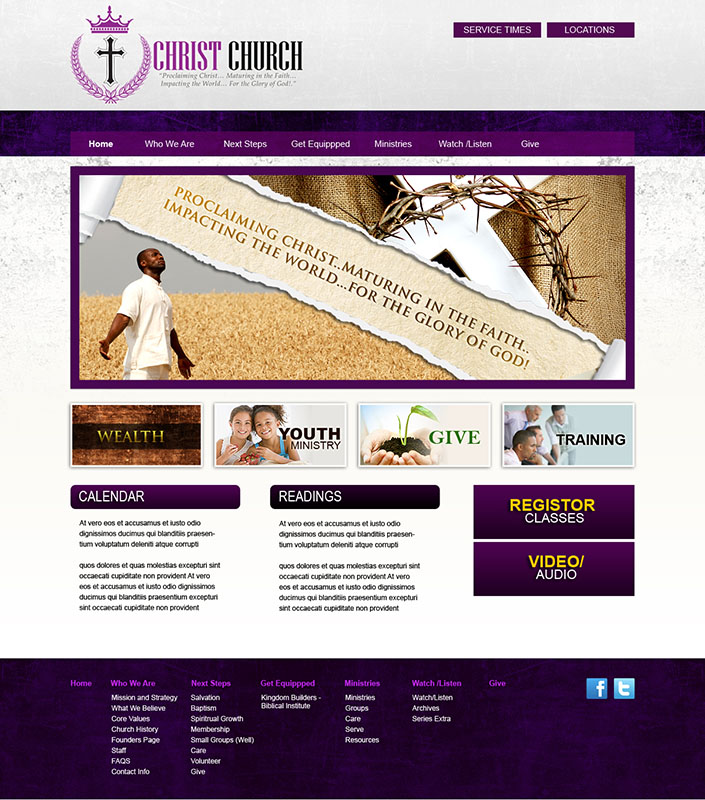Browse through this small sampling of the church websites we have created over the years. All of these designs were created in-house by our staff. Some of these are client designs while others are inspirational concepts.